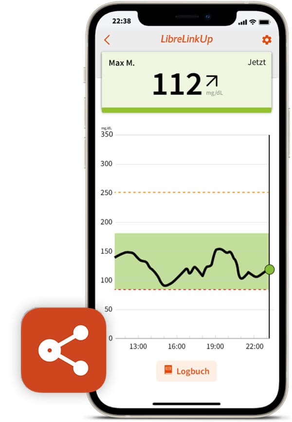 Dieser Slogan einer Diabetesselbsthilfegruppe bringt sehr gut zum Ausdruck, dass die Unterstützung durch den Partner, die Familie oder das Diabetesteam sehr hilfreich sein kann und Sicherheit schafft. Wenn Sie die Libre App nutzen, können Sie die Daten des FreeStyle Libre nicht nur selbst einsehen, sondern auch mit Angehörigen, Freunden oder Ihrem Diabetesteam teilen. Diese sehen dann Ihre Glukosewerte in Echtzeit auf ihrem Smartphone oder Tablet sowie alle anderen Funktionen wie zum Beispiel Trendpfeile oder Alarme. Das Teilen der Glukosedaten ist freiwillig und Sie können selbst bestimmen, mit wem Sie Ihre Glukosewerte teilen möchten. Dies ist mit maximal 20 Personen möglich.
